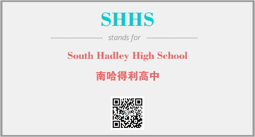 英文缩略词“SHHS”经常作为“South Hadley High School”的英文缩写来使用,中文表示:“南哈得利高中”。本文将详细介绍英文缩写词SHHS所代表英文单词,其对应的中文拼音、详细解释以及在英语中的流行度。此外,还有关于缩略词SHHS的分类、应用领域及相关应用示例等。
