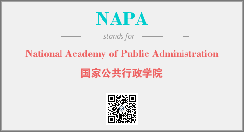 上述内容是“National Academy of Public Administration”作为“NAPA”的缩写,解释为“国家公共行政学院”时的信息,以及英文缩略词NAPA所代表的英文单词,其对应的中文拼音、详细解释以及在英文中的流行度和相关分类、应用领域及应用示例等。