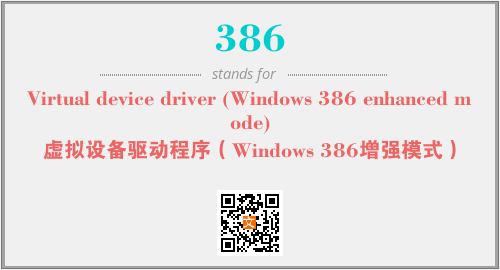 上述内容是“Virtual device driver (Windows 386 enhanced mode)”作为“386”的缩写,解释为“虚拟设备驱动程序(Windows 386增强模式)”时的信息,以及英文缩略词386所代表的英文单词,其对应的中文拼音、详细解释以及在英文中的流行度和相关分类、应用领域及应用示例等。