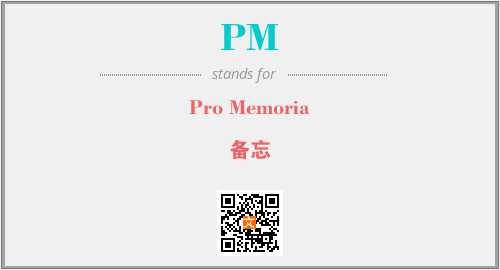 英文缩略词“PM”经常作为“Pro Memoria”的英文缩写来使用,中文表示:“备忘”。本文将详细介绍英文缩写词PM所代表英文单词,其对应的中文拼音、详细解释以及在英语中的流行度。此外,还有关于缩略词PM的分类、应用领域及相关应用示例等。