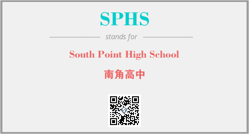 英文缩略词“SPHS”经常作为“South Point High School”的英文缩写来使用,中文表示:“南角高中”。本文将详细介绍英文缩写词SPHS所代表英文单词,其对应的中文拼音、详细解释以及在英语中的流行度。此外,还有关于缩略词SPHS的分类、应用领域及相关应用示例等。