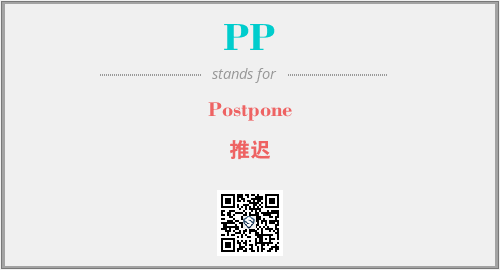 上述内容是“Postpone”作为“PP”的缩写,解释为“推迟”时的信息,以及英文缩略词PP所代表的英文单词,其对应的中文拼音、详细解释以及在英文中的流行度和相关分类、应用领域及应用示例等。
