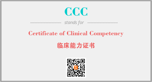 上述内容是“Certificate of Clinical Competency”作为“CCC”的缩写,解释为“临床能力证书”时的信息,以及英文缩略词CCC所代表的英文单词,其对应的中文拼音、详细解释以及在英文中的流行度和相关分类、应用领域及应用示例等。