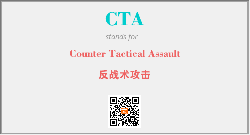 英文缩略词“CTA”经常作为“Counter Tactical Assault”的英文缩写来使用,中文表示:“反战术攻击”。本文将详细介绍英文缩写词CTA所代表英文单词,其对应的中文拼音、详细解释以及在英语中的流行度。此外,还有关于缩略词CTA的分类、应用领域及相关应用示例等。