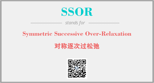 英文缩略词“SSOR”经常作为“Symmetric Successive Over-Relaxation”的英文缩写来使用,中文表示:“对称逐次过松弛”。本文将详细介绍英文缩写词SSOR所代表英文单词,其对应的中文拼音、详细解释以及在英语中的流行度。此外,还有关于缩略词SSOR的分类、应用领域及相关应用示例等。