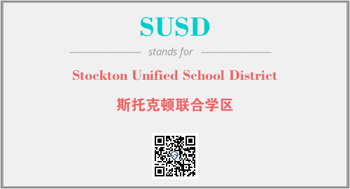 上述内容是“Stockton Unified School District”作为“SUSD”的缩写,解释为“斯托克顿联合学区”时的信息,以及英文缩略词SUSD所代表的英文单词,其对应的中文拼音、详细解释以及在英文中的流行度和相关分类、应用领域及应用示例等。
