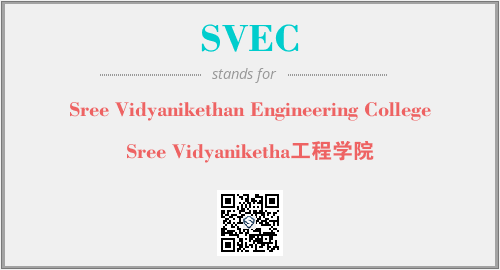 英文缩略词“SVEC”经常作为“Sree Vidyanikethan Engineering College”的英文缩写来使用,中文表示:“Sree Vidyaniketha工程学院”。本文将详细介绍英文缩写词SVEC所代表英文单词,其对应的中文拼音、详细解释以及在英语中的流行度。此外,还有关于缩略词SVEC的分类、应用领域及相关应用示例等。