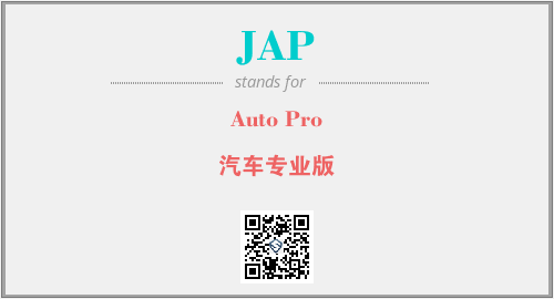 上述内容是“Auto Pro”作为“JAP”的缩写,解释为“汽车专业版”时的信息,以及英文缩略词JAP所代表的英文单词,其对应的中文拼音、详细解释以及在英文中的流行度和相关分类、应用领域及应用示例等。