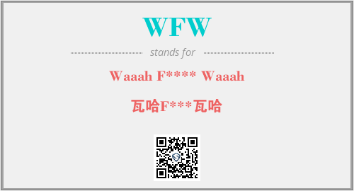 英文缩略词“WFW”经常作为“Waaah F**** Waaah”的英文缩写来使用,中文表示:“瓦哈F***瓦哈”。本文将详细介绍英文缩写词WFW所代表英文单词,其对应的中文拼音、详细解释以及在英语中的流行度。此外,还有关于缩略词WFW的分类、应用领域及相关应用示例等。