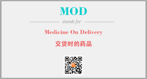 上述内容是“Medicine On Delivery”作为“MOD”的缩写,解释为“交货时的药品”时的信息,以及英文缩略词MOD所代表的英文单词,其对应的中文拼音、详细解释以及在英文中的流行度和相关分类、应用领域及应用示例等。