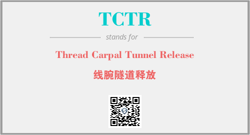 英文缩略词“TCTR”经常作为“Thread Carpal Tunnel Release”的英文缩写来使用,中文表示:“线腕隧道释放”。本文将详细介绍英文缩写词TCTR所代表英文单词,其对应的中文拼音、详细解释以及在英语中的流行度。此外,还有关于缩略词TCTR的分类、应用领域及相关应用示例等。