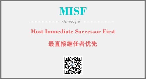 上述内容是“Most Immediate Successor First”作为“MISF”的缩写,解释为“最直接继任者优先”时的信息,以及英文缩略词MISF所代表的英文单词,其对应的中文拼音、详细解释以及在英文中的流行度和相关分类、应用领域及应用示例等。