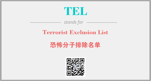 上述内容是“Terrorist Exclusion List”作为“TEL”的缩写,解释为“恐怖分子排除名单”时的信息,以及英文缩略词TEL所代表的英文单词,其对应的中文拼音、详细解释以及在英文中的流行度和相关分类、应用领域及应用示例等。