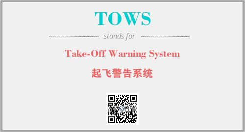 英文缩略词“TOWS”经常作为“Take-Off Warning System”的英文缩写来使用,中文表示:“起飞警告系统”。本文将详细介绍英文缩写词TOWS所代表英文单词,其对应的中文拼音、详细解释以及在英语中的流行度。此外,还有关于缩略词TOWS的分类、应用领域及相关应用示例等。