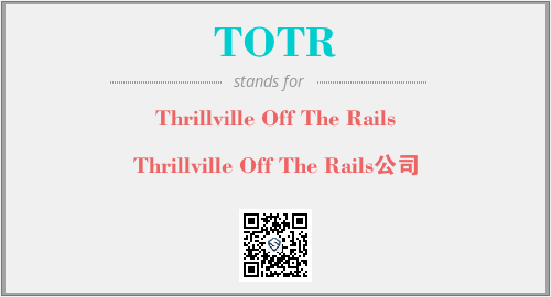 上述内容是“Thrillville Off The Rails”作为“TOTR”的缩写,解释为“Thrillville Off The Rails公司”时的信息,以及英文缩略词TOTR所代表的英文单词,其对应的中文拼音、详细解释以及在英文中的流行度和相关分类、应用领域及应用示例等。