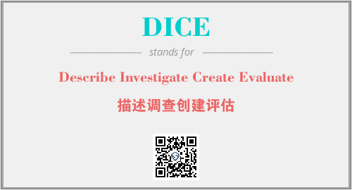 上述内容是“Describe Investigate Create Evaluate”作为“DICE”的缩写,解释为“描述调查创建评估”时的信息,以及英文缩略词DICE所代表的英文单词,其对应的中文拼音、详细解释以及在英文中的流行度和相关分类、应用领域及应用示例等。