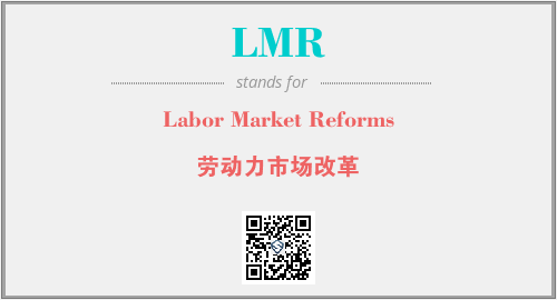 上述内容是“Labor Market Reforms”作为“LMR”的缩写,解释为“劳动力市场改革”时的信息,以及英文缩略词LMR所代表的英文单词,其对应的中文拼音、详细解释以及在英文中的流行度和相关分类、应用领域及应用示例等。