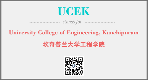 上述内容是“University College of Engineering, Kanchipuram”作为“UCEK”的缩写,解释为“坎奇普兰大学工程学院”时的信息,以及英文缩略词UCEK所代表的英文单词,其对应的中文拼音、详细解释以及在英文中的流行度和相关分类、应用领域及应用示例等。
