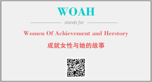 上述内容是“Women Of Achievement and Herstory”作为“WOAH”的缩写,解释为“成就女性与她的故事”时的信息,以及英文缩略词WOAH所代表的英文单词,其对应的中文拼音、详细解释以及在英文中的流行度和相关分类、应用领域及应用示例等。