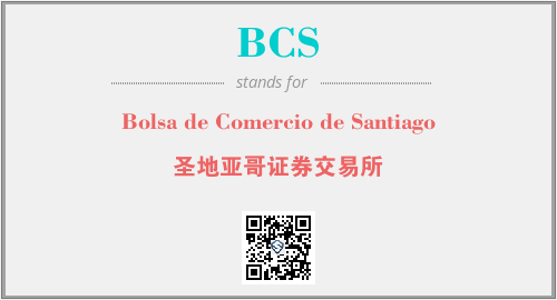 英文缩略词“BCS”经常作为“Bolsa de Comercio de Santiago”的英文缩写来使用,中文表示:“圣地亚哥证券交易所”。本文将详细介绍英文缩写词BCS所代表英文单词,其对应的中文拼音、详细解释以及在英语中的流行度。此外,还有关于缩略词BCS的分类、应用领域及相关应用示例等。