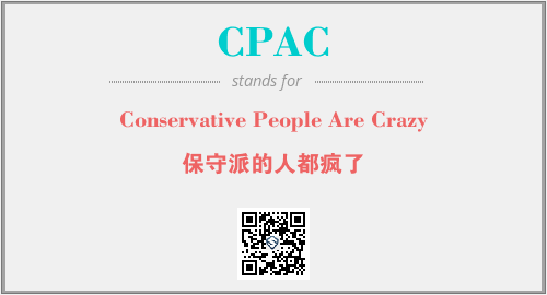 以上为Conservative People Are Crazy英文缩略词CPAC的中文解释,以及该英文缩写在英语的流行度、分类和应用领域方面的信息。
