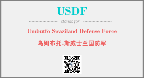 英文缩略词“USDF”经常作为“Umbutfo Swaziland Defense Force”的英文缩写来使用,中文表示:“乌姆布托-斯威士兰国防军”。本文将详细介绍英文缩写词USDF所代表英文单词,其对应的中文拼音、详细解释以及在英语中的流行度。此外,还有关于缩略词USDF的分类、应用领域及相关应用示例等。