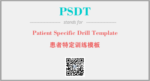 上述内容是“Patient Specific Drill Template”作为“PSDT”的缩写,解释为“患者特定训练模板”时的信息,以及英文缩略词PSDT所代表的英文单词,其对应的中文拼音、详细解释以及在英文中的流行度和相关分类、应用领域及应用示例等。