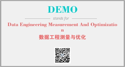 上述内容是“Data Engineering Measurement And Optimization”作为“DEMO”的缩写,解释为“数据工程测量与优化”时的信息,以及英文缩略词DEMO所代表的英文单词,其对应的中文拼音、详细解释以及在英文中的流行度和相关分类、应用领域及应用示例等。