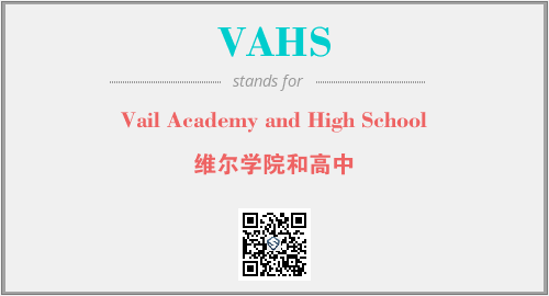 上述内容是“Vail Academy and High School”作为“VAHS”的缩写,解释为“维尔学院和高中”时的信息,以及英文缩略词VAHS所代表的英文单词,其对应的中文拼音、详细解释以及在英文中的流行度和相关分类、应用领域及应用示例等。