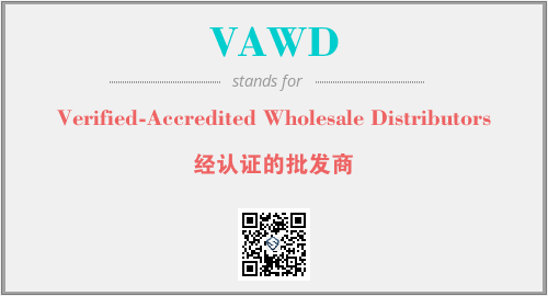 上述内容是“Verified-Accredited Wholesale Distributors”作为“VAWD”的缩写,解释为“经认证的批发商”时的信息,以及英文缩略词VAWD所代表的英文单词,其对应的中文拼音、详细解释以及在英文中的流行度和相关分类、应用领域及应用示例等。