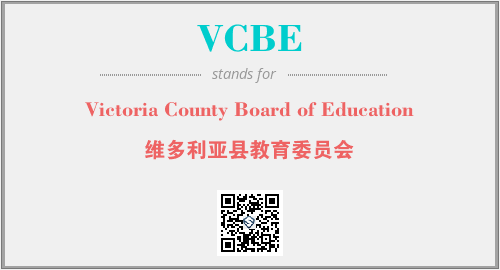 上述内容是“Victoria County Board of Education”作为“VCBE”的缩写,解释为“维多利亚县教育委员会”时的信息,以及英文缩略词VCBE所代表的英文单词,其对应的中文拼音、详细解释以及在英文中的流行度和相关分类、应用领域及应用示例等。
