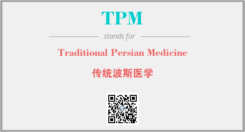 英文缩略词“TPM”经常作为“Traditional Persian Medicine”的英文缩写来使用,中文表示:“传统波斯医学”。本文将详细介绍英文缩写词TPM所代表英文单词,其对应的中文拼音、详细解释以及在英语中的流行度。此外,还有关于缩略词TPM的分类、应用领域及相关应用示例等。