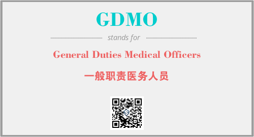 英文缩略词“GDMO”经常作为“General Duties Medical Officers”的英文缩写来使用,中文表示:“一般职责医务人员”。本文将详细介绍英文缩写词GDMO所代表英文单词,其对应的中文拼音、详细解释以及在英语中的流行度。此外,还有关于缩略词GDMO的分类、应用领域及相关应用示例等。