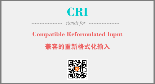 上述内容是“Compatible Reformulated Input”作为“CRI”的缩写,解释为“兼容的重新格式化输入”时的信息,以及英文缩略词CRI所代表的英文单词,其对应的中文拼音、详细解释以及在英文中的流行度和相关分类、应用领域及应用示例等。