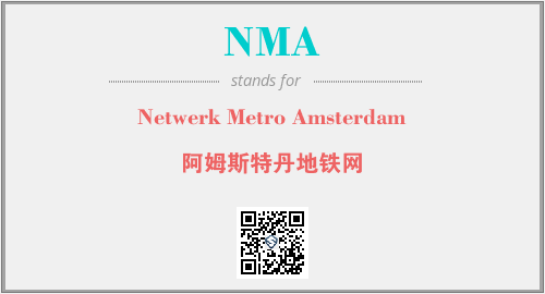 上述内容是“Netwerk Metro Amsterdam”作为“NMA”的缩写,解释为“阿姆斯特丹地铁网”时的信息,以及英文缩略词NMA所代表的英文单词,其对应的中文拼音、详细解释以及在英文中的流行度和相关分类、应用领域及应用示例等。