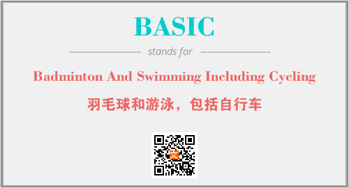 英文缩略词“BASIC”经常作为“Badminton And Swimming Including Cycling”的英文缩写来使用,中文表示:“羽毛球和游泳,包括自行车”。本文将详细介绍英文缩写词BASIC所代表英文单词,其对应的中文拼音、详细解释以及在英语中的流行度。此外,还有关于缩略词BASIC的分类、应用领域及相关应用示例等。