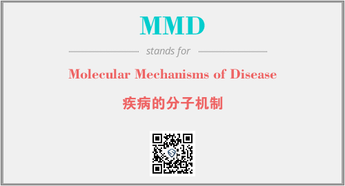 上述内容是“Molecular Mechanisms of Disease”作为“MMD”的缩写,解释为“疾病的分子机制”时的信息,以及英文缩略词MMD所代表的英文单词,其对应的中文拼音、详细解释以及在英文中的流行度和相关分类、应用领域及应用示例等。