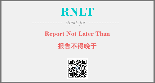 以上为Report Not Later Than英文缩略词RNLT的中文解释,以及该英文缩写在英语的流行度、分类和应用领域方面的信息。
