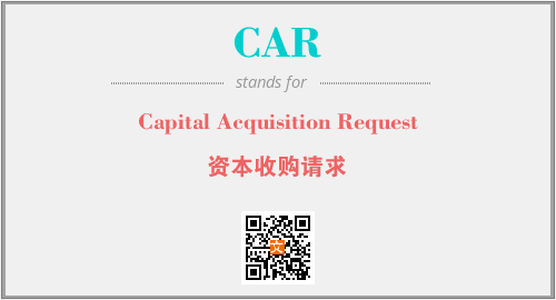 上述内容是“Capital Acquisition Request”作为“CAR”的缩写,解释为“资本收购请求”时的信息,以及英文缩略词CAR所代表的英文单词,其对应的中文拼音、详细解释以及在英文中的流行度和相关分类、应用领域及应用示例等。