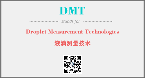 上述内容是“Droplet Measurement Technologies”作为“DMT”的缩写,解释为“液滴测量技术”时的信息,以及英文缩略词DMT所代表的英文单词,其对应的中文拼音、详细解释以及在英文中的流行度和相关分类、应用领域及应用示例等。