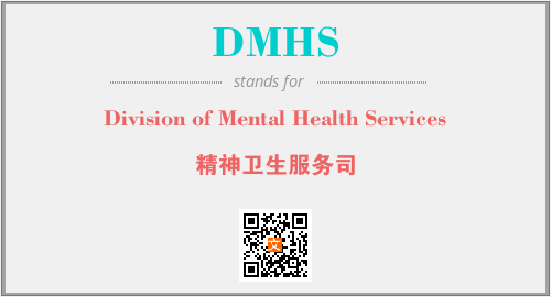 英文缩略词“DMHS”经常作为“Division of Mental Health Services”的英文缩写来使用,中文表示:“精神卫生服务司”。本文将详细介绍英文缩写词DMHS所代表英文单词,其对应的中文拼音、详细解释以及在英语中的流行度。此外,还有关于缩略词DMHS的分类、应用领域及相关应用示例等。