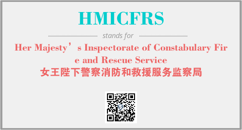 上述内容是“Her Majesty’s Inspectorate of Constabulary Fire and Rescue Service”作为“HMICFRS”的缩写,解释为“女王陛下警察消防和救援服务监察局”时的信息,以及英文缩略词HMICFRS所代表的英文单词,其对应的中文拼音、详细解释以及在英文中的流行度和相关分类、应用领域及应用示例等。