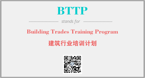 英文缩略词“BTTP”经常作为“Building Trades Training Program”的英文缩写来使用,中文表示:“建筑行业培训计划”。本文将详细介绍英文缩写词BTTP所代表英文单词,其对应的中文拼音、详细解释以及在英语中的流行度。此外,还有关于缩略词BTTP的分类、应用领域及相关应用示例等。
