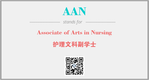 上述内容是“Associate of Arts in Nursing”作为“AAN”的缩写,解释为“护理文科副学士”时的信息,以及英文缩略词AAN所代表的英文单词,其对应的中文拼音、详细解释以及在英文中的流行度和相关分类、应用领域及应用示例等。
