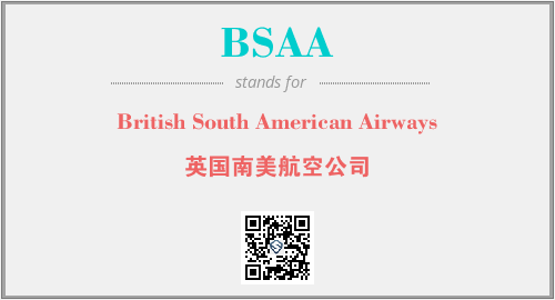 英文缩略词“BSAA”经常作为“British South American Airways”的英文缩写来使用,中文表示:“英国南美航空公司”。本文将详细介绍英文缩写词BSAA所代表英文单词,其对应的中文拼音、详细解释以及在英语中的流行度。此外,还有关于缩略词BSAA的分类、应用领域及相关应用示例等。