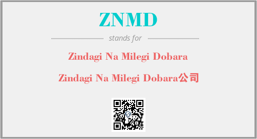 以上为Zindagi Na Milegi Dobara英文缩略词ZNMD的中文解释,以及该英文缩写在英语的流行度、分类和应用领域方面的信息。