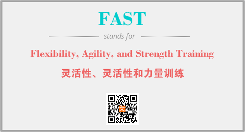 以上为Flexibility, Agility, and Strength Training英文缩略词FAST的中文解释,以及该英文缩写在英语的流行度、分类和应用领域方面的信息。