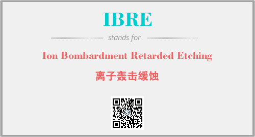 上述内容是“Ion Bombardment Retarded Etching”作为“IBRE”的缩写,解释为“离子轰击缓蚀”时的信息,以及英文缩略词IBRE所代表的英文单词,其对应的中文拼音、详细解释以及在英文中的流行度和相关分类、应用领域及应用示例等。