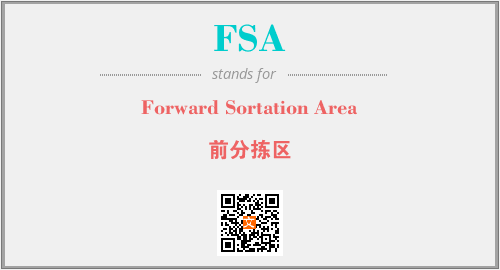 上述内容是“Forward Sortation Area”作为“FSA”的缩写,解释为“前分拣区”时的信息,以及英文缩略词FSA所代表的英文单词,其对应的中文拼音、详细解释以及在英文中的流行度和相关分类、应用领域及应用示例等。