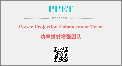 上述内容是“Power Projection Enhancement Team”作为“PPET”的缩写,解释为“功率投射增强团队”时的信息,以及英文缩略词PPET所代表的英文单词,其对应的中文拼音、详细解释以及在英文中的流行度和相关分类、应用领域及应用示例等。